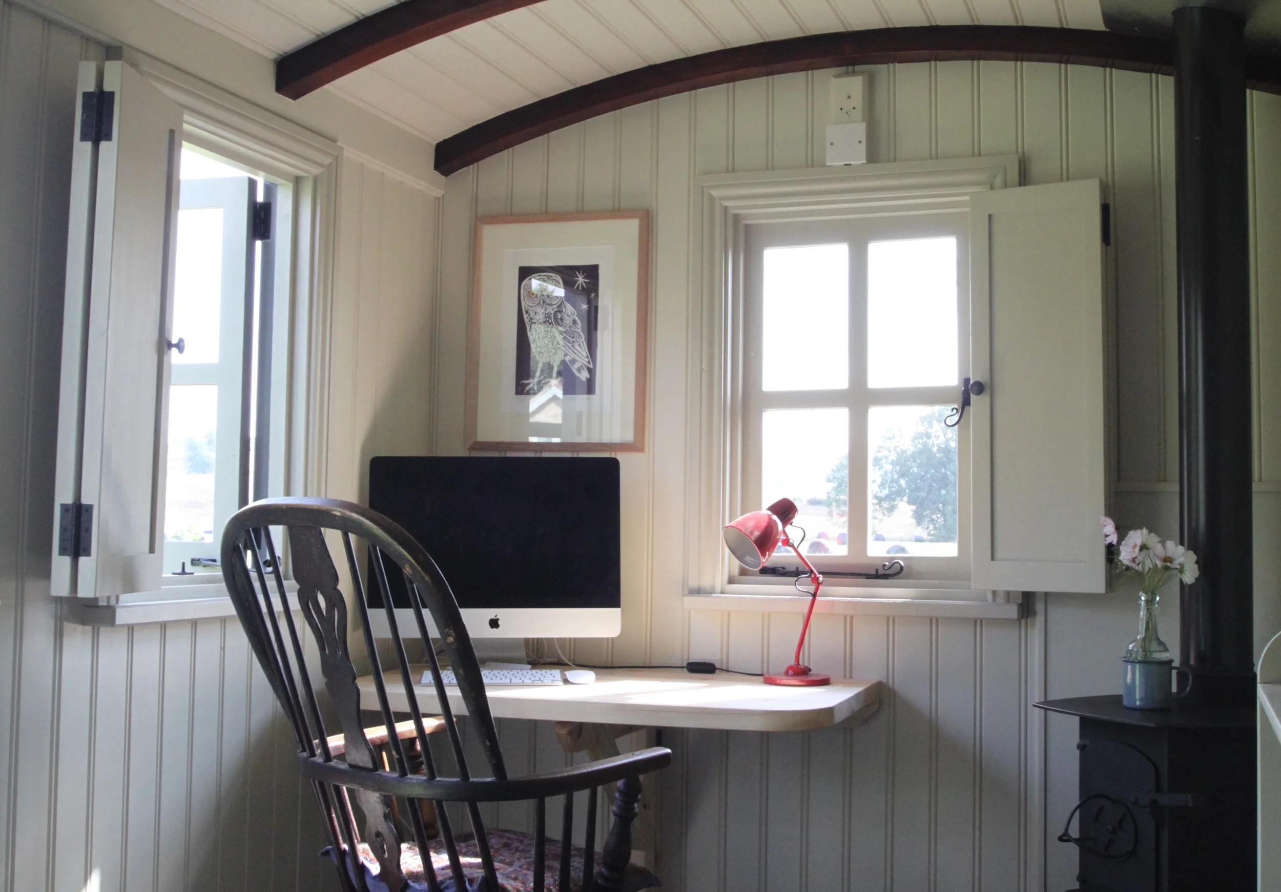 If you are not sure about whether you will need to use your shepherds hut as an office yet, our basic hut models start at just £5,000 plus vat and can easily be converted into an office space is entirely possible at a later date. If you're interested, here's a blog on the traditional use of a shepherd's hut. What kind of materials do house martin shepherd huts use? Inside you have a blank canvas to create a unique and bespoke space. Instead of trying to balance a laptop on your knees while watching tv, being able to go to a specific room that you can call an office means you can get your work done quickly and effectively.
